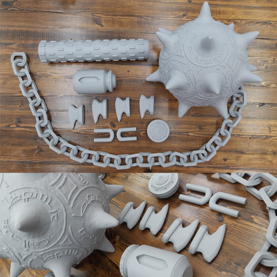 Doom: The Dark Ages flail - 3D printed DIY kit to sand, assemble and paint by yourself.